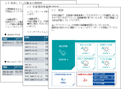 インターネットの公開情報をもとにお客様が保有しているIT資産に対して、以下の項目を調査します